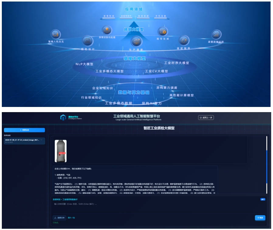 智匠工业质检大模型算法依托山东省重点研发计划(重大科技创新工程)“大规模通用人工智能模型开发”项目,融合多尺度视觉特征建模、像素密集预测与跨模态语义理解等关键技术,有效应对传统工业视觉算法在小样本、微小缺陷、多形态噪声干扰等场景下泛化能力不足的问题,可覆盖60种工业产品,对351种缺陷类型(包括划痕、裂纹、孔洞、污染等)进行精准定位与分类,并自动生成缺陷成因及处置建议,在玻璃容器缺陷检测中使漏检率降低约38%,在废钢视觉识别中准确率超过90%。未来,智匠工业质检大模型算法将围绕工业质检高频场景,持续沉淀跨行业缺陷样本与质量数据,推动质检模型从“单点检测工具”向“质量分析与决策支撑工具”演进,为企业在质量追溯、工艺优化和风险预警等环节提供智能支撑。