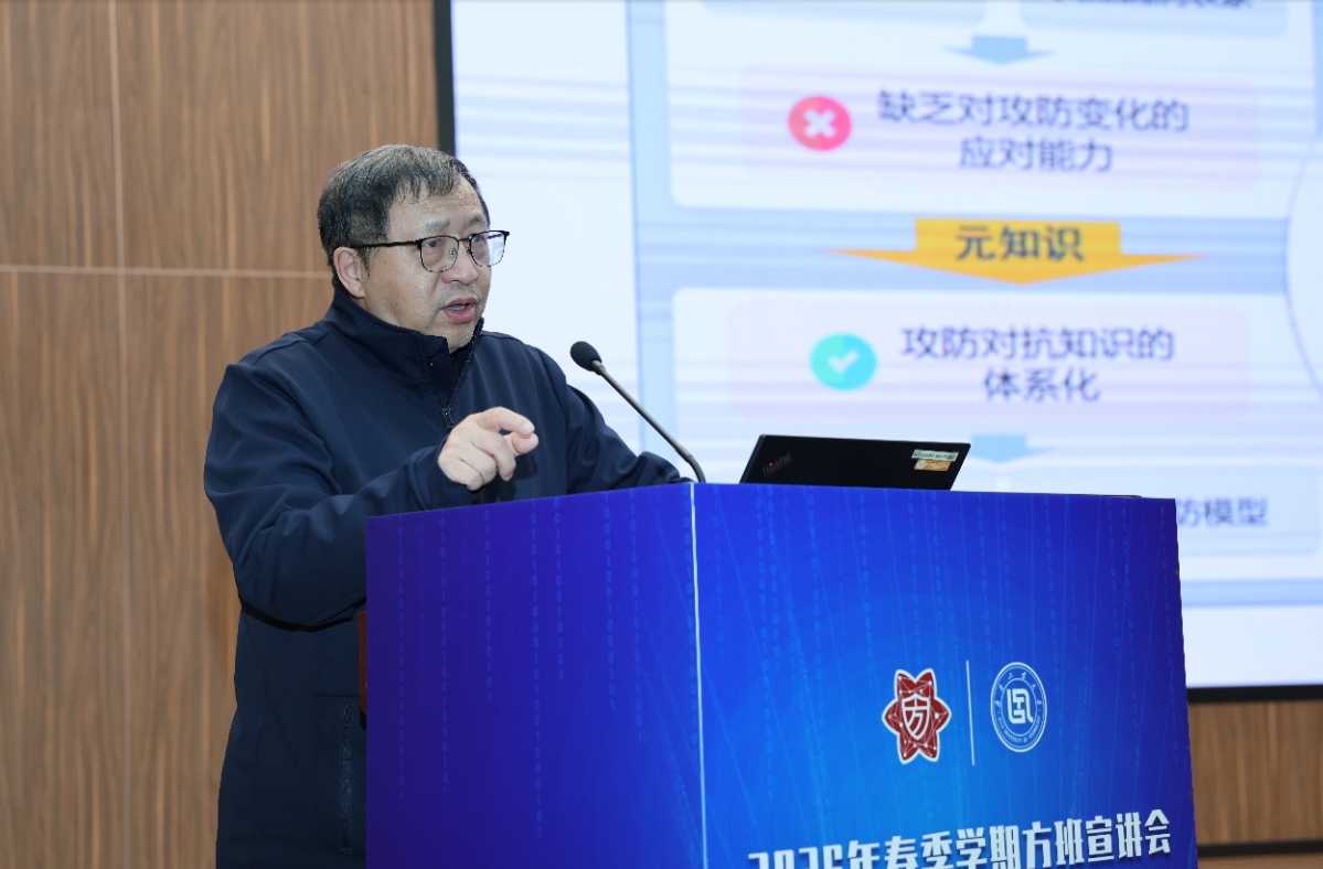 随后,吴晓明围绕建设理念、课程体系、师资团队、平台基础等多个方面,系统展示了校(院)“方班实验班”的建设基础与发展规划。他表示,方班实验班将秉持“厚基础、重思辨、强实践、促创新”的建设思路,以校(院)学科优势和国家超级计算济南中心等重大科研平台优势为依托,深度整合网络空间安全、计算机科学、人工智能等相关领域优质资源,着力构建课堂教学、科研训练、学术研讨、实践锻炼相互贯通的人才培养体系,努力把实验班建设成为培养高素质、复合型、创新型网络空间安全人才的重要载体,为服务国家战略需求和区域数字化发展提供更加坚实的人才支撑。