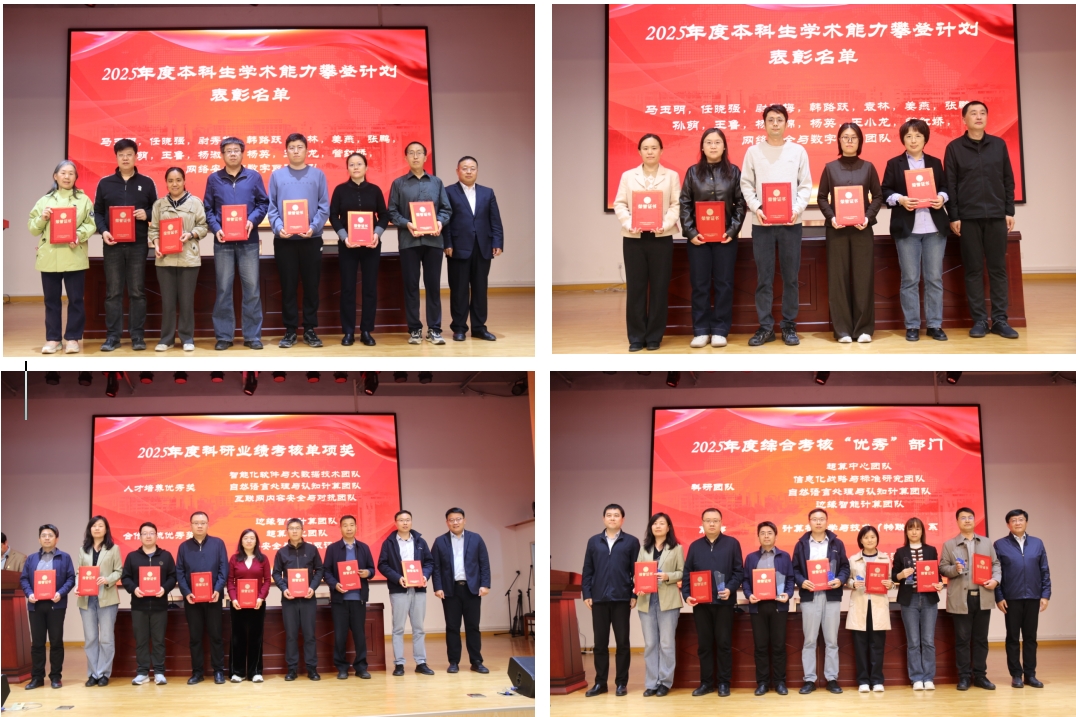 大会对学部2025年度获得“本科学术能力攀登计划”人员、科研业绩考核单项、综合考核“优秀”部门进行表彰。学部领导为获奖个人和部门颁奖。此次表彰旨在选树典型、弘扬先进,鼓励各部门对标先进典型,持续夯实教学科研根基、优化管理服务效能,在推动学部事业高质量发展中展现新担当、实现新作为。