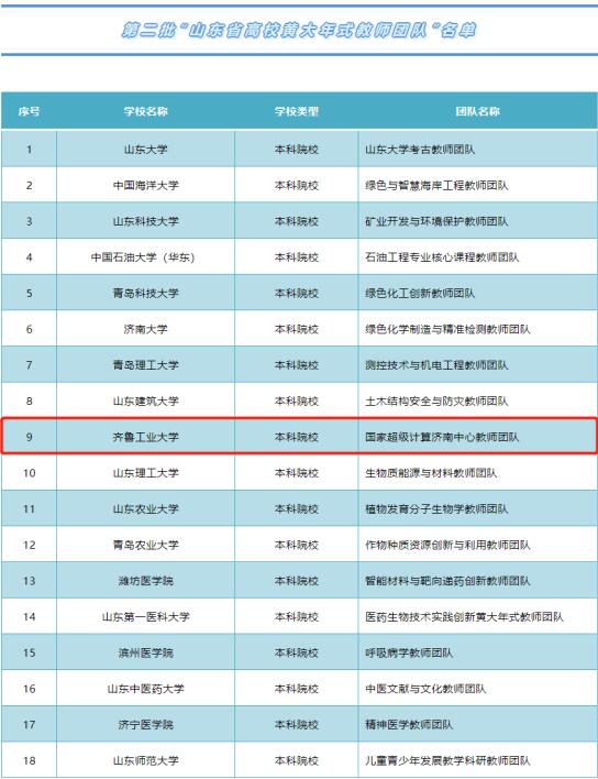 8月15日,山东省教育厅公布第二批“山东省高校黄大年式教师团队”名单,“国家超级计算济南中心教师团队”成功入选。