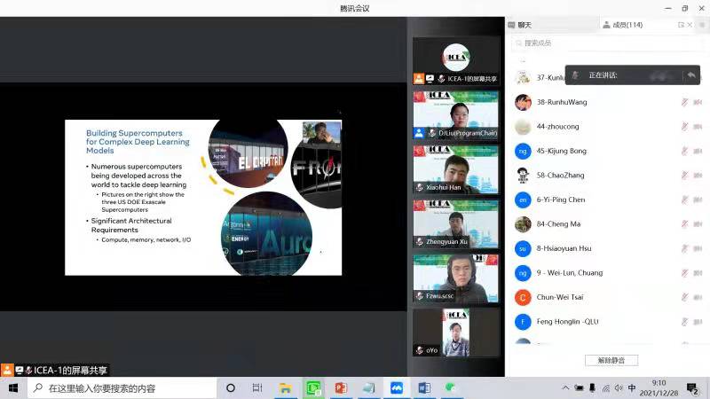 来自中国、美国、日本、韩国等7个国家和地区的累计200余名专家学者、研究生参加了本次会议。会议邀请了Facebook AI应用科学家Pavan Balaji博士、北京科技大学张海君教授做了主旨演讲,主要围绕Meta 大规模个性化深度学习推荐模型、6G 移动网络中的智能资源管理等方面交流学术界最新技术成果。会议邀请了来自中国科学院、西交利物浦大学、北京交通大学、齐鲁工业大学的知名学者主持各学术交流环节,来自于清华大学、国防科技大学、北京交通大学、Tokyo University of Technology、University of Science & Technology Korea等知名高校院所的39名学者专家、研究生进行学术汇报,主题涵盖了机器学习及机器学习在并行计算、大数据、工业互联网、网络安全、软件定义网络等信息技术重要领域。与会人员充分运用会议平台进行了深入交流,聚焦行业热点前沿,探讨未来发展方向,分析领域技术创新与行业应用,极大拓宽智力资源与合作机遇。本次会议所有录用论文将由ACM出版社以会议论文集形式发表,并送EI检索。
