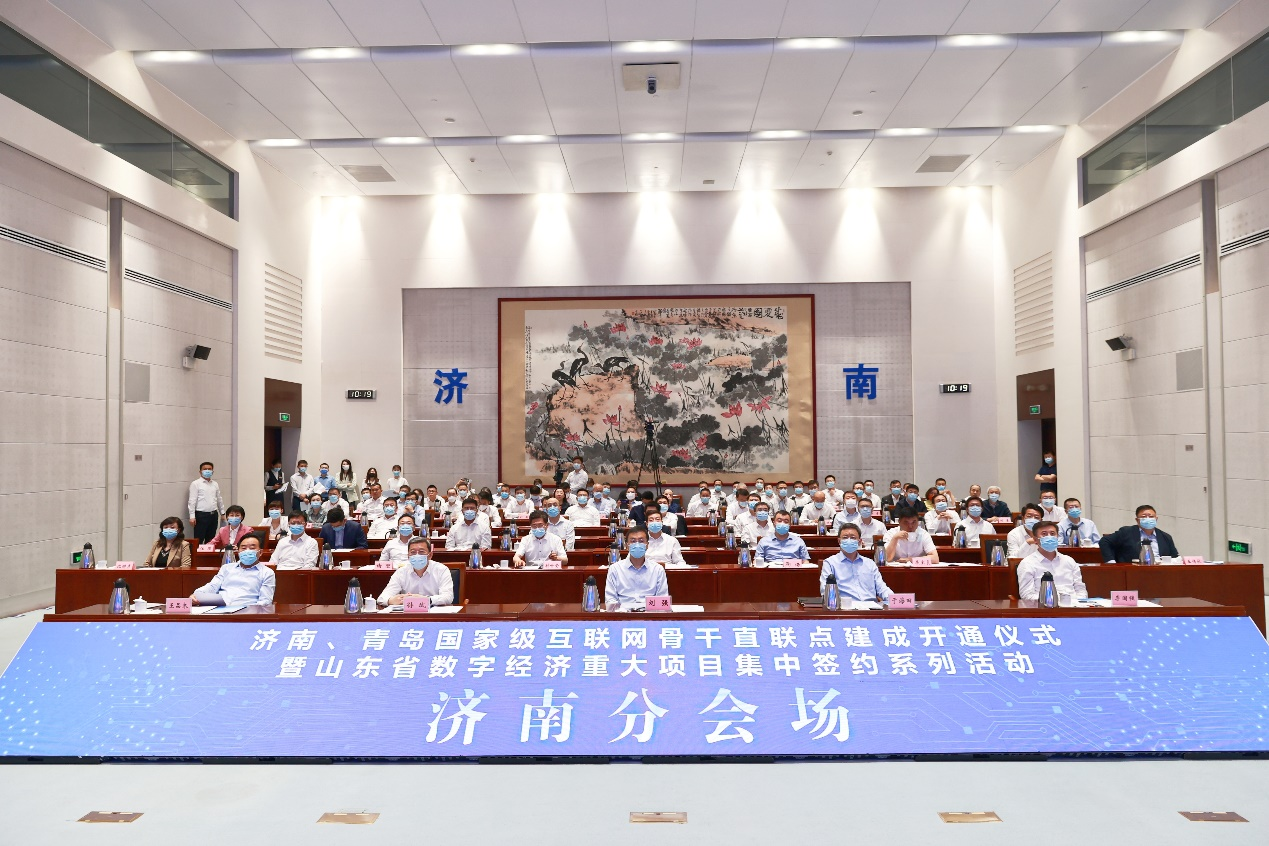 5月19日上午,济南、青岛国家级互联网骨干直联点建成开通仪式暨山东省数字经济重大项目集中签约系列活动通过线上线下结合方式举行,活动由国家工业和信息化部与山东省委、省政府联合举办,分别在北京、济南、青岛三地设置四个分会场。